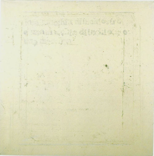 Pittura portata ai limiti della pittura. Scrittura al margine della scrittura. Stampa che non è una stampa. Nell'incertezza tra orlo ed estenuazione, tra stravolgimento e dissoluzione, Luciano De Nicolo corrode pratiche e significati sospendendone l'ovvietà e la cogenza, neutralizzando la presenza in un rinvio a rinvii, nel segno di un disegno. È al fare arte che si allude. Nell'autoreferenzialità di un fine che esclude ogni subordinazione strumentale, questo prodotto parla di se come di ciò che per eccellenza parla d'altro, d'un altro tanto essenziale quanto sfuggente, tanto radicale quanto indeterminabile. Lo svuotamento consuma dall'interno la densità e lo spessore dell'opera, trasformandola in un simulacro minimalista, cenotafio del visibile. Come la filosofia, anche l'arte vive della sua morte. Si può continuare a praticarla solo a condizione di alterarne il senso.